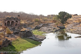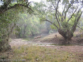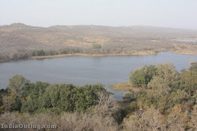 The landscape is dotted with ancient Banyan Trees, Dhok & Pipal trees, clusters of mango trees and crisscrossed with evergreen belts. The terrain is made up of massive rock formations, steep scarps, perennial lakes and streams and forest suddenly opening up into large areas of Savannah. The terrain of Ranthambore Wildlife Sanctuary fluctuates between impregnable forests and open bush land. The forest is the typically dry deciduous type, with Dhok, being the most prominent tree.